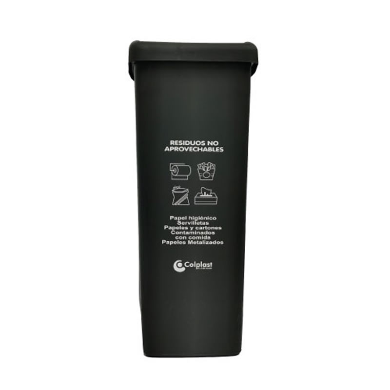 Color Negro, Residuos No Aprovechables: Envolturas y restos de comida, papel higiénico, bolsas de plástico y envases descartables.